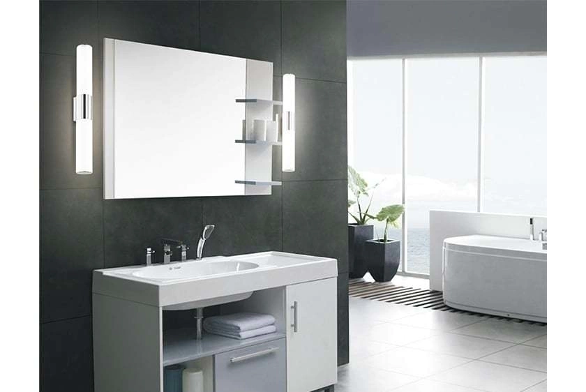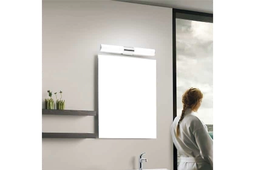 Aplique de Pared de Acrilico Blanco con detalles Acero Inoxidable IP44 550x100x50mm con LED incorporado 1x8w 520lm 3000K -
